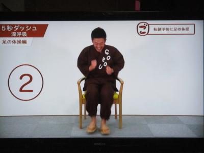歌謡体操ではテレビ画面を見ながらテンポ良く身体を動かしました