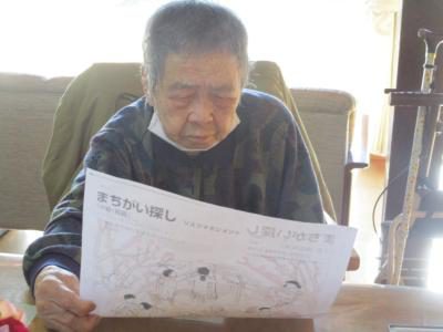 2つの絵を見て間違いを探すお母さん