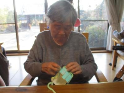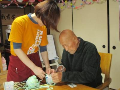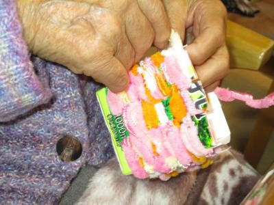 毛糸を巻く、編むなどの作業を通して、手指の巧緻性の