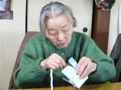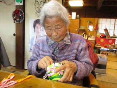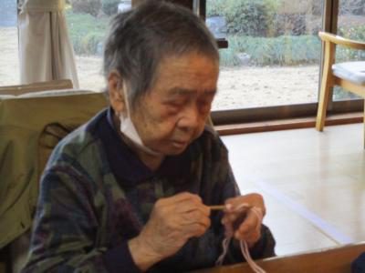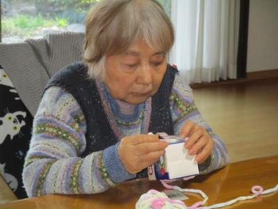 こちらのお母さんはお得意の編み物でくさり編み