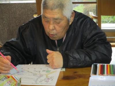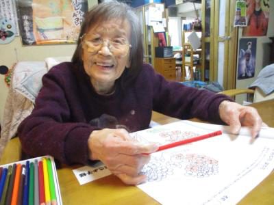 塗り絵が大好きな母はカメラを向けたら満面の笑みです