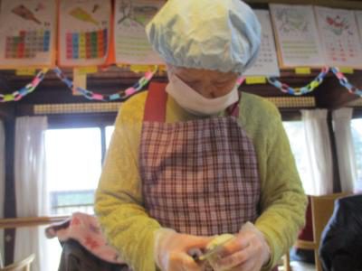大ベテランのお母さんは慣れた手つきでザクザク綺麗に裁ってくださいました