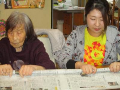 新聞紙を丸めたり、ひねったりする事で、手指の