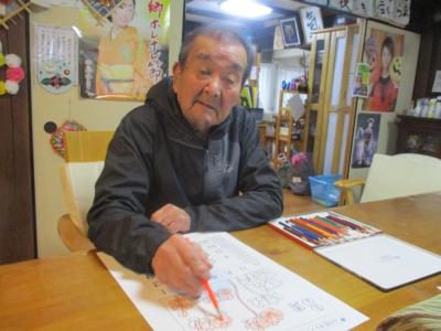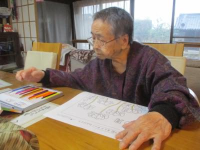 お父さんは、レンゲの花を一つひとつ丁寧に色付けしています。