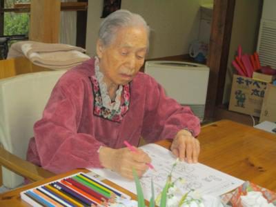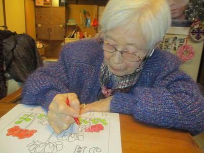 早速、好きな色をセレクトして頂き塗り絵スタートです