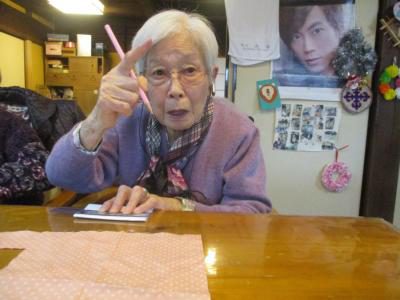こちらでも、大きな生地を広げ裁断作業に取り掛かる母達です。