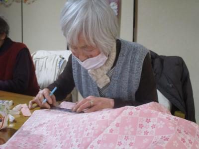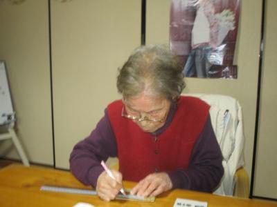 1㎝ずつ、測りながら丁寧に印付けする母・・・