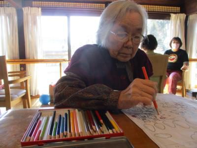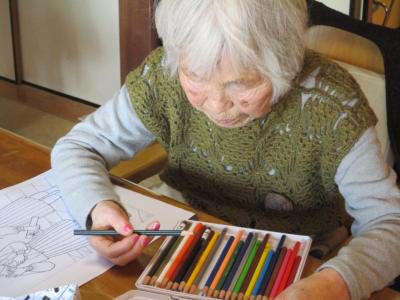 塗り絵の大好きなお父さんは、スタッフの呼び掛けも耳に入らぬ程の集中力で取り組まれていました(*^^)v