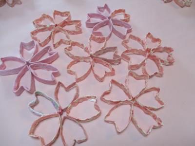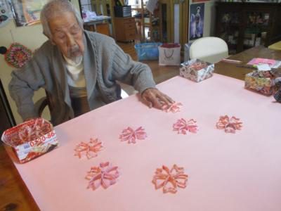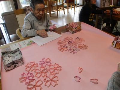 桜の花がたくさん出来たのでいよいよ模造紙に貼り付けていきます