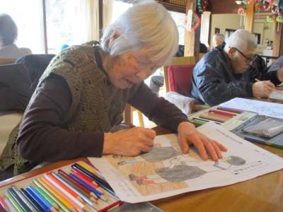 カレンダー塗り絵や数字塗り絵に取り組みます