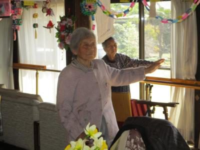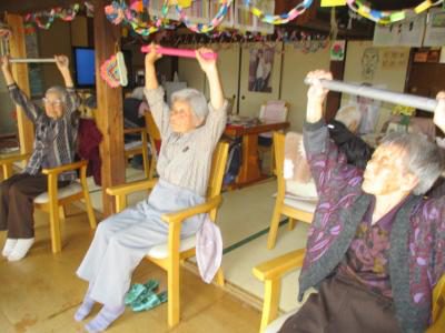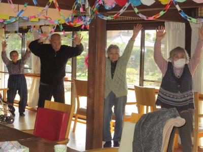 歌を口遊みながら、リズムに乗って体操します