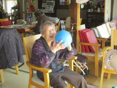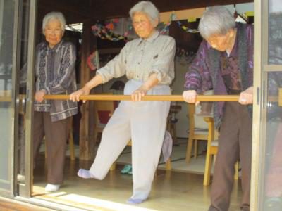縁側では、笑いも交えながら楽しく運動に取り組む母達の姿が・・・楽しく取り組む事で、運動効果も一段とアップしちゃいます