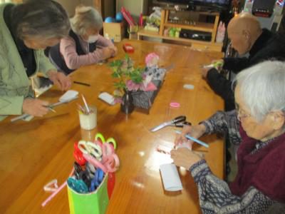 利用者様同士、おしゃべりを楽しみながら製作されています。