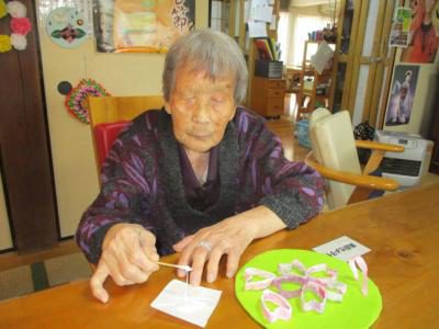 満開に咲かせるには、沢山作らなきゃね♪・・・と、お母さん達は意欲満々に取り組まれています。