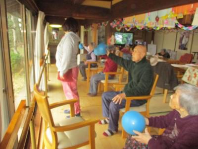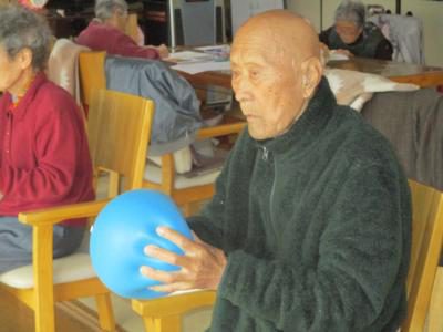 次はボールを使って握る力を鍛えます