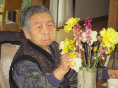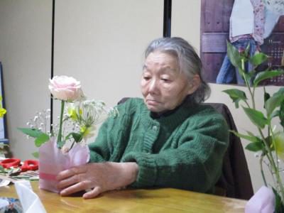 来庵されるなり、綺麗なお花に目を向けて形を整える母・・・