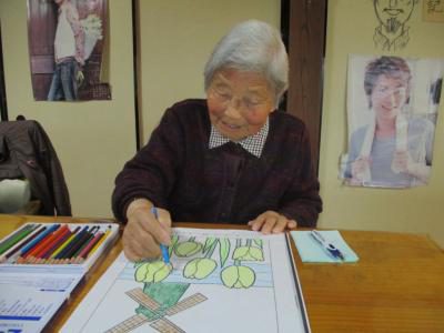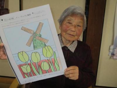 チューリップの塗り絵が完成したお母さん!