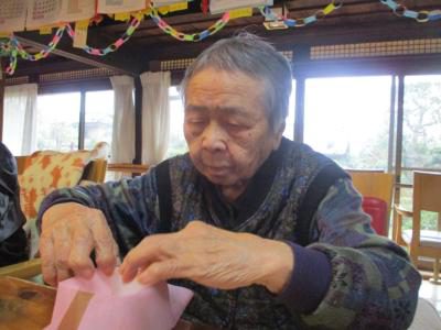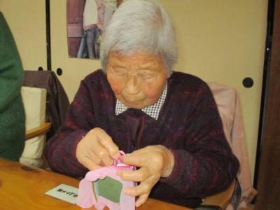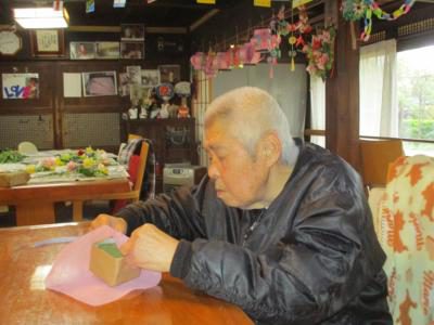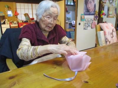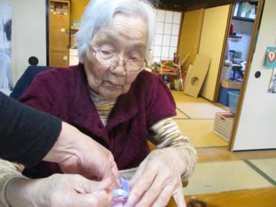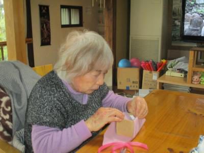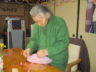 紙を巻くのも器用に指先を使って頑張るお母さん。