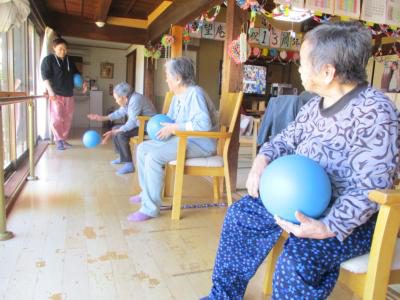 ボールの上に乗って体幹を鍛えるのはもちろん