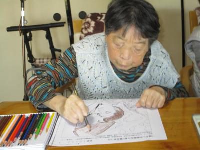 午前中は塗り絵の時間