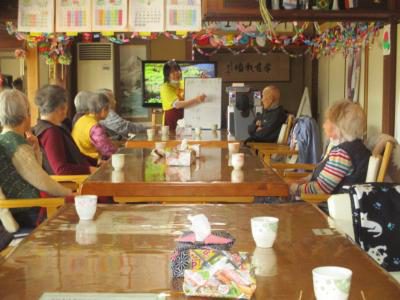 幸望訓、口腔体操のあいうべ~体操、ぼけたらあかんの唱和と続き、合唱は【春が来た】を熱唱されました
