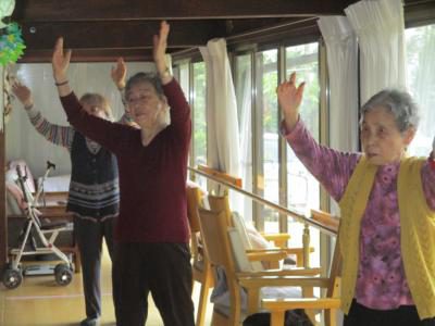 体操は懐かしの歌謡曲で楽しく身体を動かします。