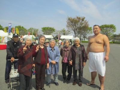 客席では、皆さんのご要望に応え一緒に記念撮影に応じて下さったり、握手して下さったりと気さくな力士に、皆さんの笑顔も綻びます(^_^)