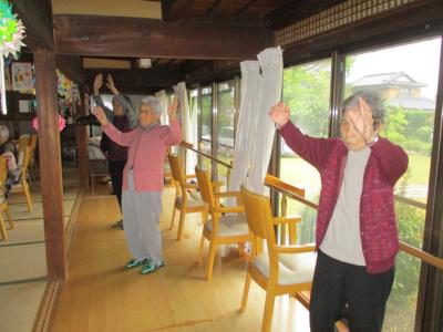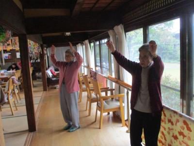 るんるん (音符)皆さん張り切って音楽体操で身体を動かしまするんるん (音符)