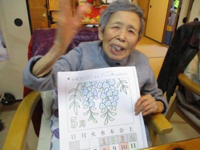 午後からは、「大人の塗り絵」5月のカレンダーです