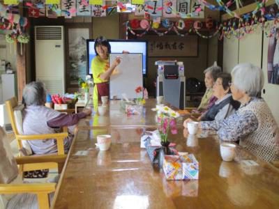 毎日行う歌謡体操は、楽しみながらも自然に身体を動かす事が出来るので皆さんに人気です(*^^)v
