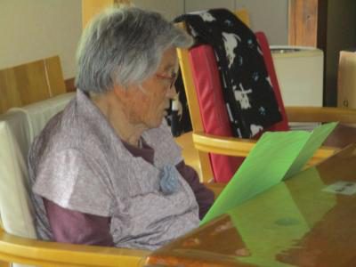 【ぼけたらあかん】の唱和では、文字を目で追い