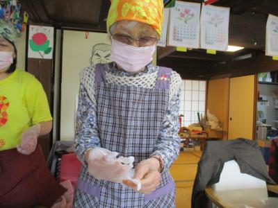 エプロン、バンダナ、マスクを付けたら手袋をして準備