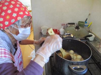 皆さんで分担しながら楽しく作業を進め、美味しく出来上がった昼食を楽しく頬張ります