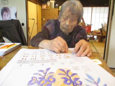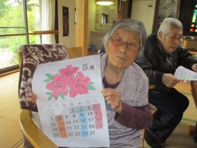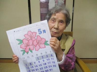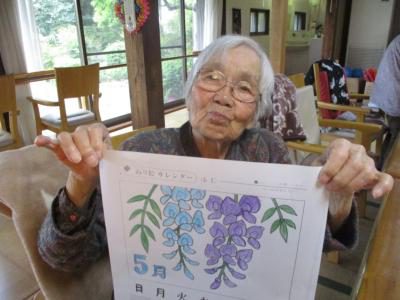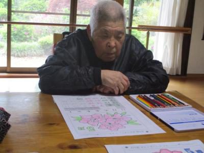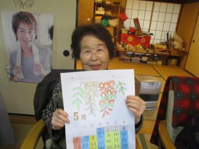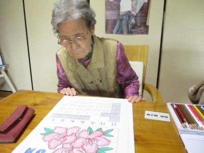 それぞれ、藤やツツジ等のお花のカレンダーを、熱心に塗り始めました!