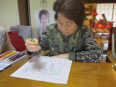 色の指定の無い塗り絵は、皆さんの感性でお好きなように塗り進められ、各々集中され素敵に仕上げられて行来ます。