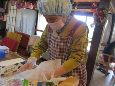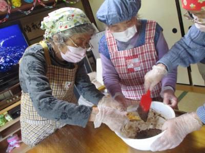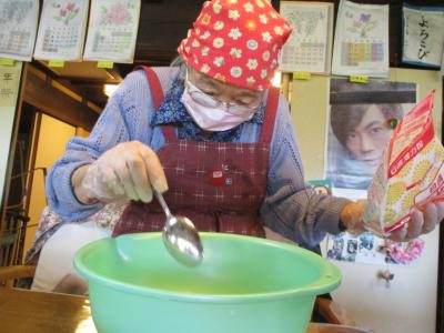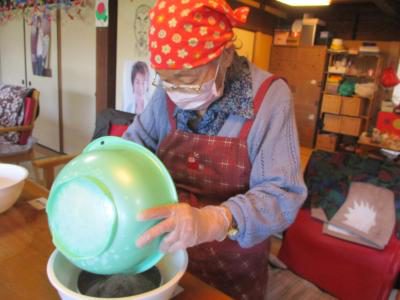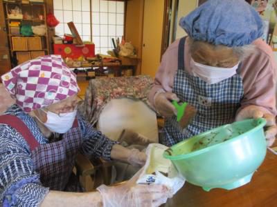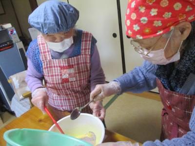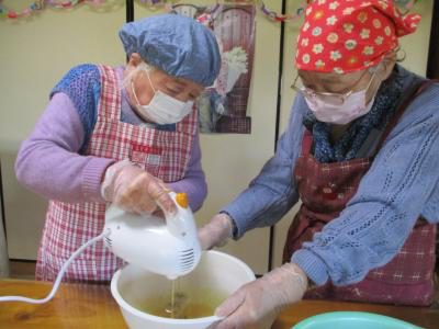 ハンドミキサーは力仕事なので交代で協力しながら行います