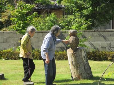 一本の木からチェーンソーで作り上げたふくろうに感激されていました