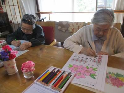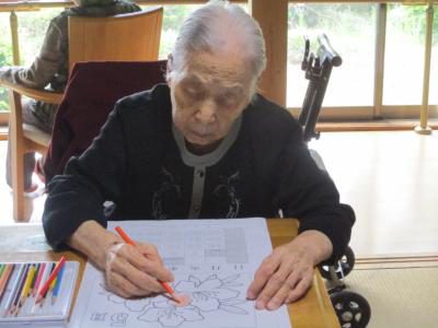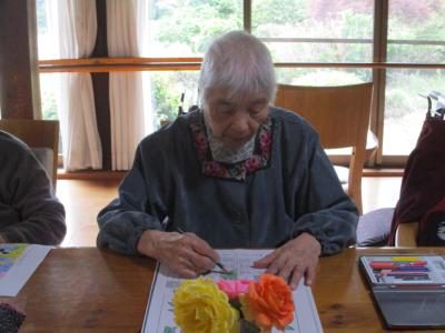 丁寧に一つ一つのお花を塗られています。
