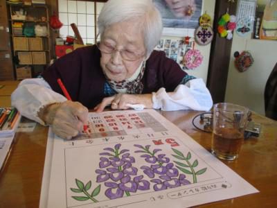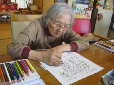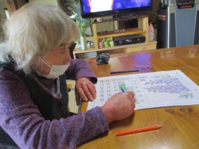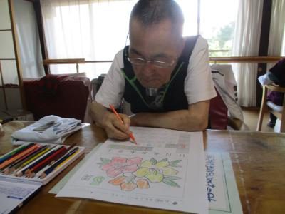 藤やツツジの季節のお花を丁寧に塗っていきます