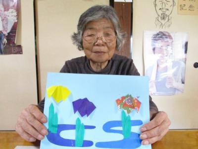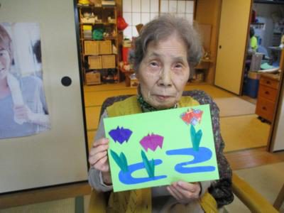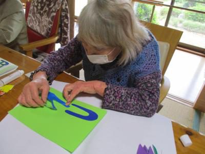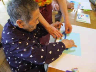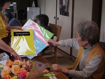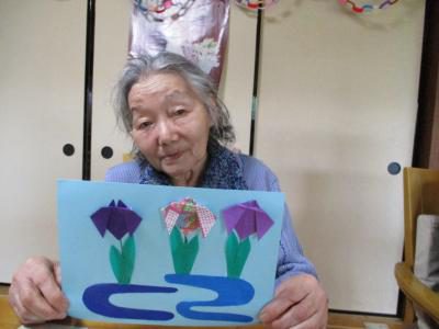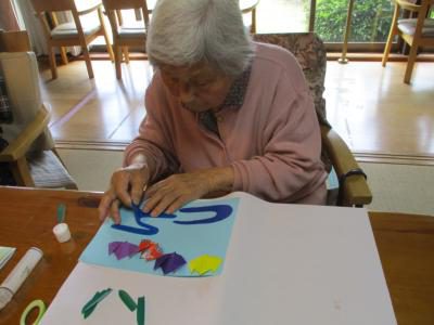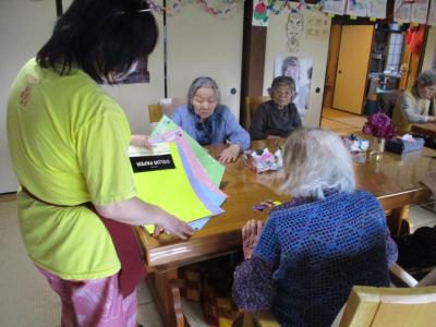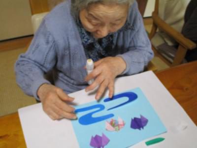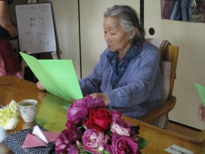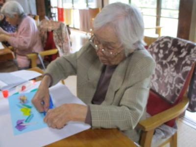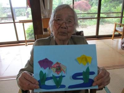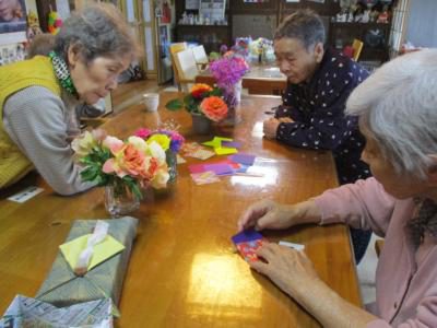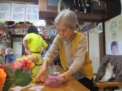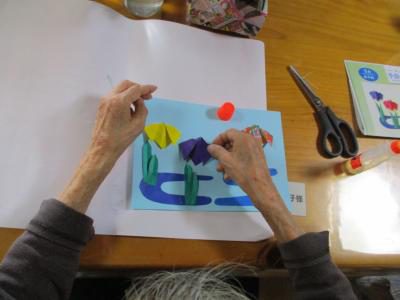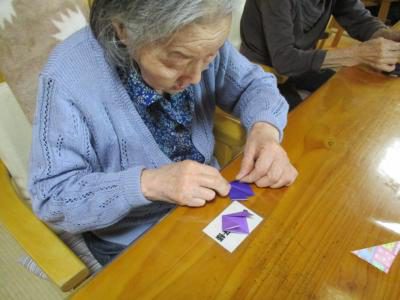 手元しっかり見て折り紙の端と端をしっかり合わせます