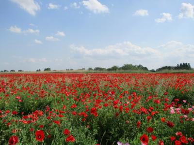 心地よい風に鳥のさえずり、揺れるポピーを見ながら