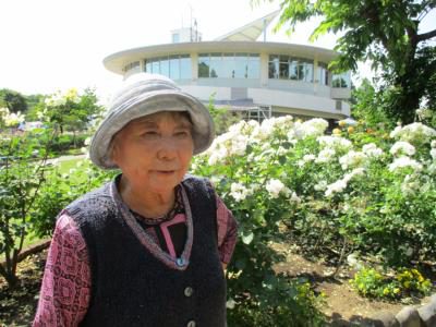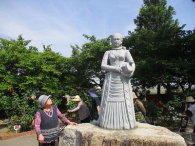 日本初の女医・荻野吟子像を熱心に眺めていました