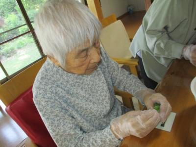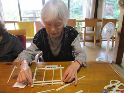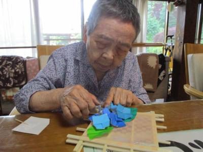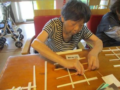 紫陽花の壁掛け作りは割りばしで額を作ります