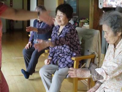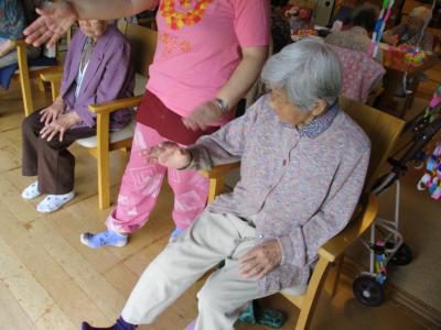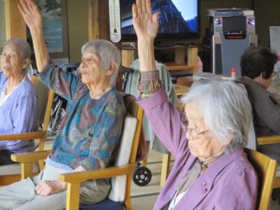 看護師の合図に従い皆さん右左としっかり腕を上げて行きます、段々疲れて来ますね