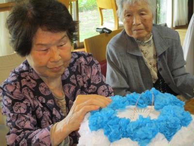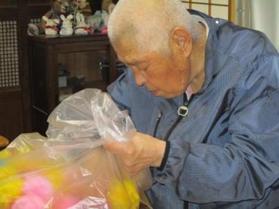 皆さんに作って頂いたお花の中から父に白と青だけ探していただきました