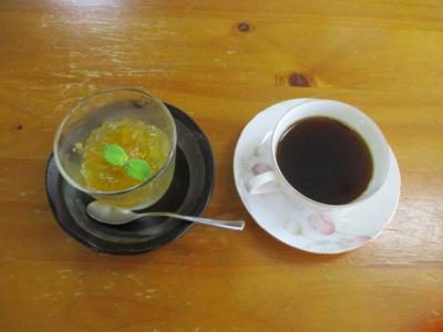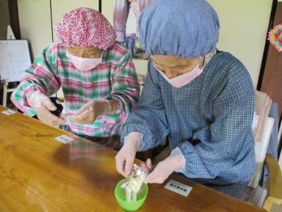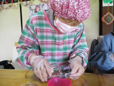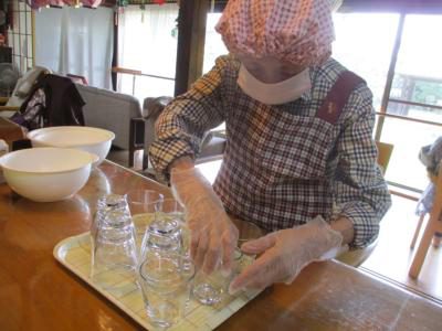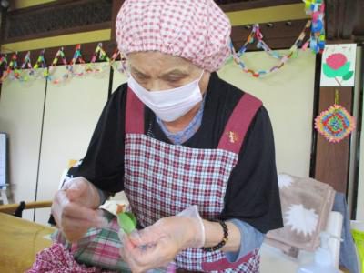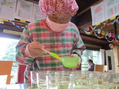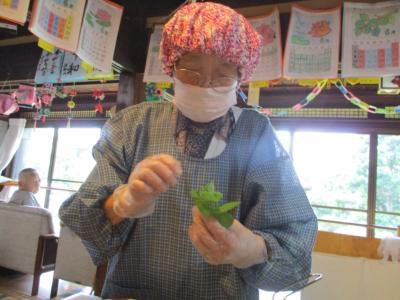 幸望庵に庭で採れたミントをトッピング用にカットします