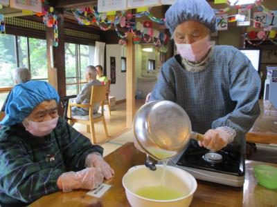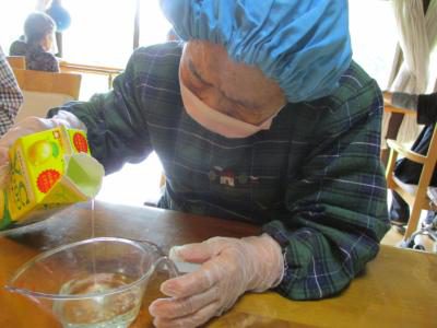 梅ジュースに煮溶かしたゼラチンを入れかき混ぜます