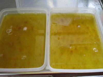 梅ジャムもゼラチンで硬め冷倉庫で冷やしていけば完成