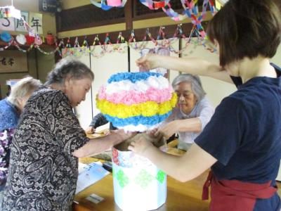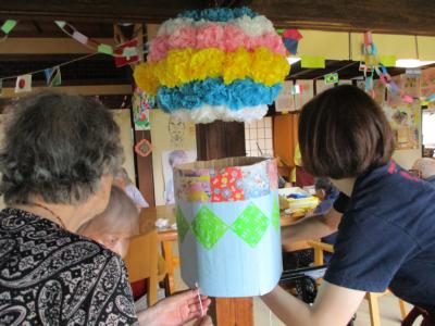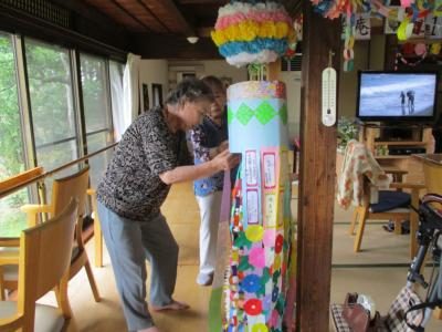 皆さんの願い事のかいた短冊も一緒に飾ります