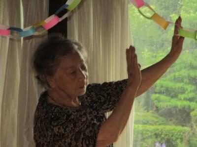 恒例の「あいうべ体操」「ぼけたらあかん」の唱和を始めます